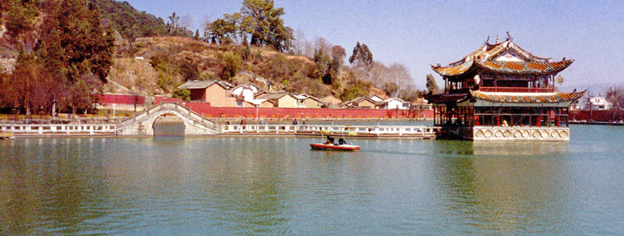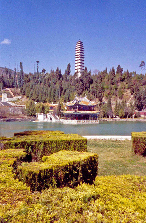 Après mon gros dîner à 2 yuans (25 sous), je suis partie explorer la ville. Quelques temples, un grand parc dans la montagne et un petit lac en périphérie.